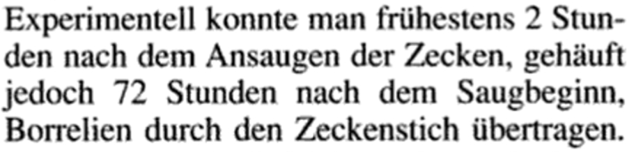 Zeckenborreliose – Lyme-Krankheit bei Mensch und Tier Taschenbuch – 12. Juni 2003 von Hans Horst (Autor), Arndt Liebisch (Autor). Zitat aus Seite 244.